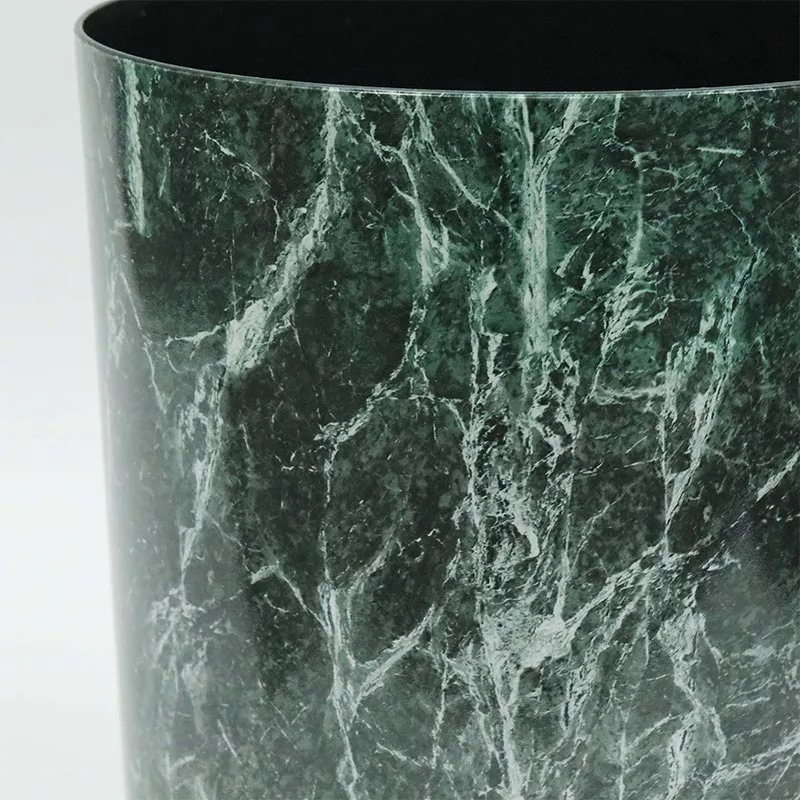 This Garbage Can Injection Molding In-Mold Label is a professionally customized marble-patterned garbage can label for our Middle Eastern clients. YZY utilizes in-mold labeling technology to replicate natural marble patterns, resulting in a sophisticated visual appeal that complements the decor styles of high-end residences, hotels, and commercial spaces. It is more decorative than ordinary plastic and metal garbage cans.
